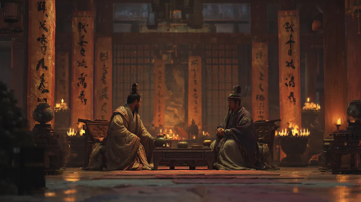 진나라 도공이 정나라와의 전쟁에서 승리하고 돌아왔을 때, 정나라는 화친의 의미로 수많은 보물과 악사들을 선물로 보냈습니다. 승리에 도취된 도공은 이 선물들을 신하들에게 나누어 주며 기쁨을 만끽하려 했습니다. 그때, 신하 위강이 정중하게 선물을 거절하며 도공에게 간언을 올립니다.
